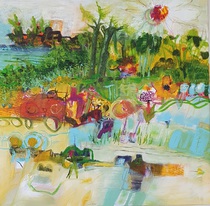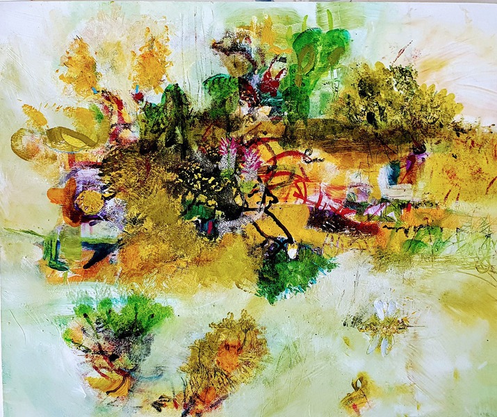 Meine inneren Bilder von Landschaften, Bäumen, Blüten, Gärten, Wasser und Himmel spielen zusammen mit meiner Fantasie ein Spiel um Komposition und abstrakten Ausdruck. Neue Welten entstehen. Keine davon entspringt der Wirklichkeit. Diese Bilder entstammen meiner inneren Spielfreude und dem Bedürfnis, neue Wohlfühl-Sphären zu schaffen. Eintreten und bummeln...